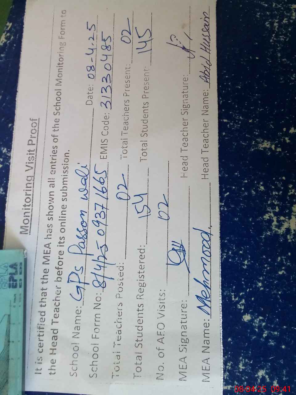 | EMIS Code: 31330485 | Name of School: GPS PASSON WALI | |||