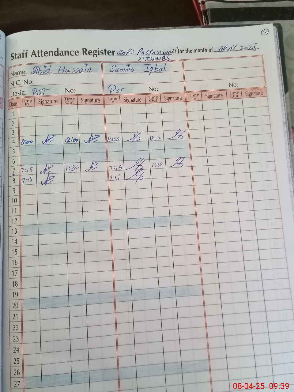 | Name: AB**** HU**** Designation: (School Headmaster's/Headmistress's) PST/PTC/JV Phone/Cell Number: 03**** |