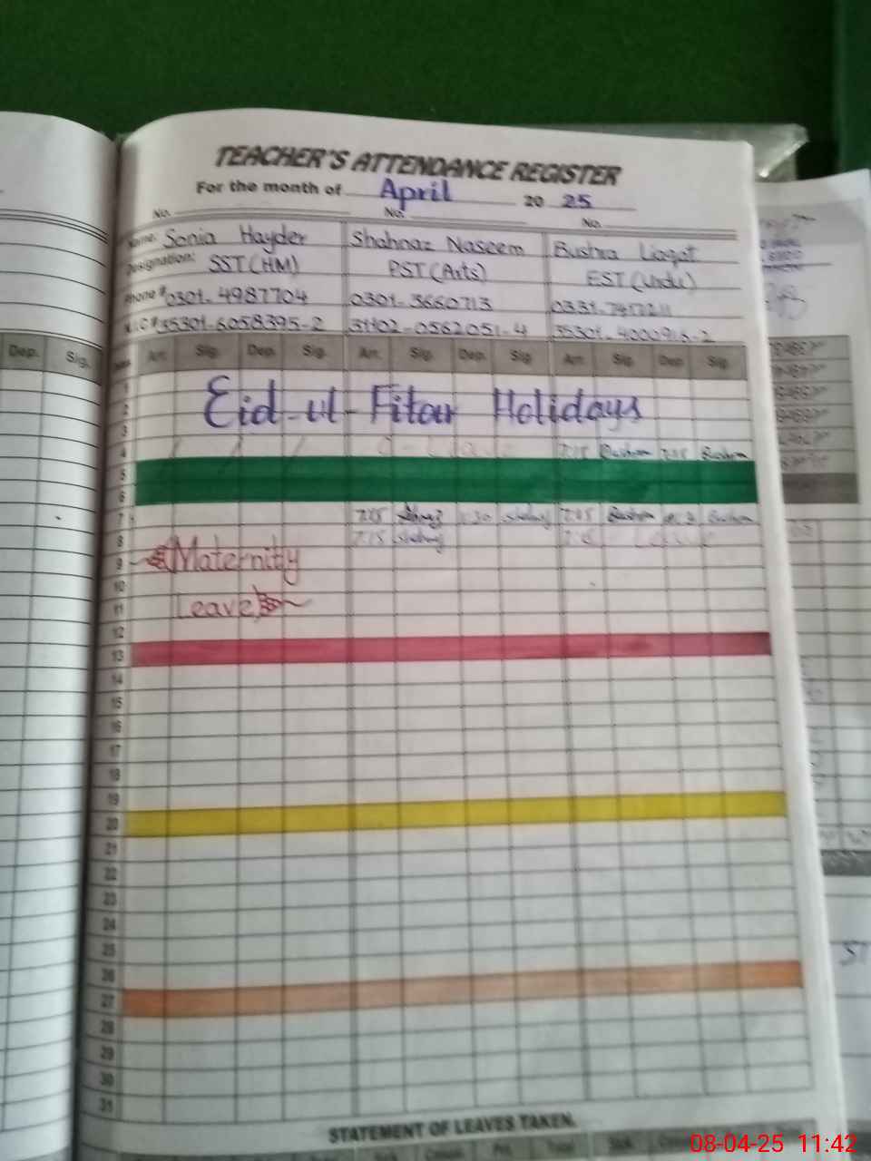 | Leave | Duty | Absent | Maternity | Medical | Ex- Pak |