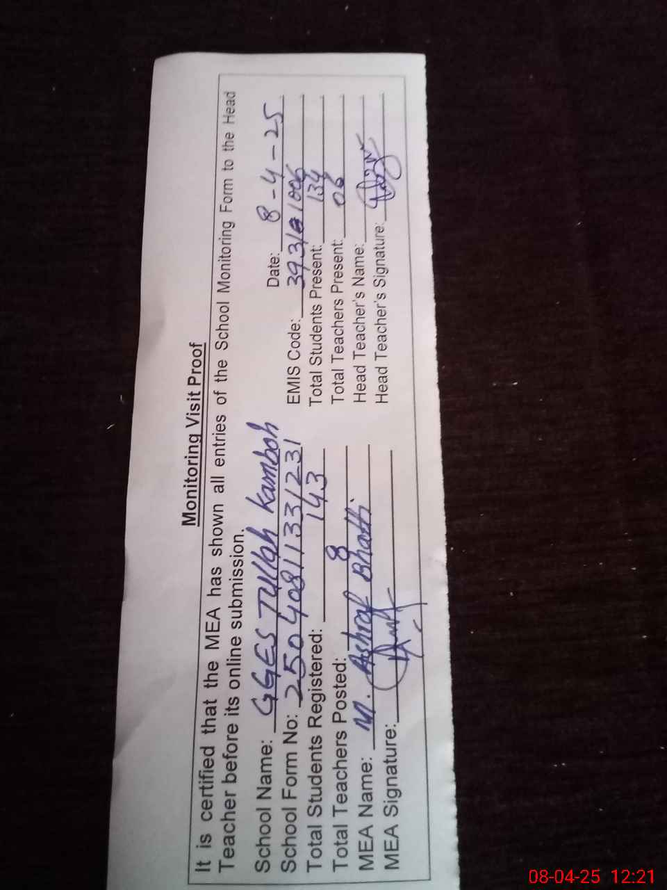 | EMIS Code: 39311006 | Name of School: GGES TULLAH KAMBOH | |||