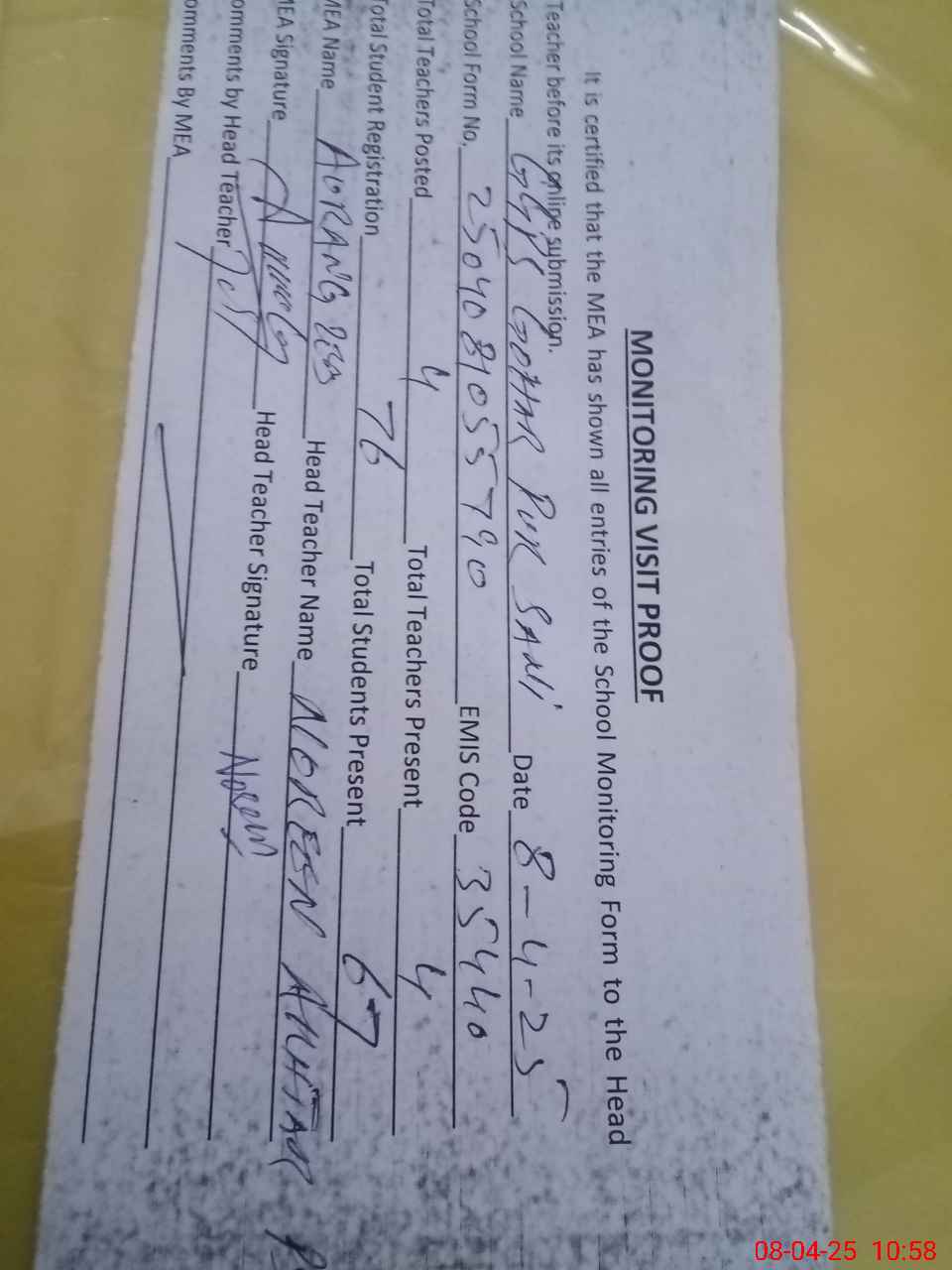| EMIS Code: 35440563 | Name of School: GGPS GOHAR PUR SANI | |||