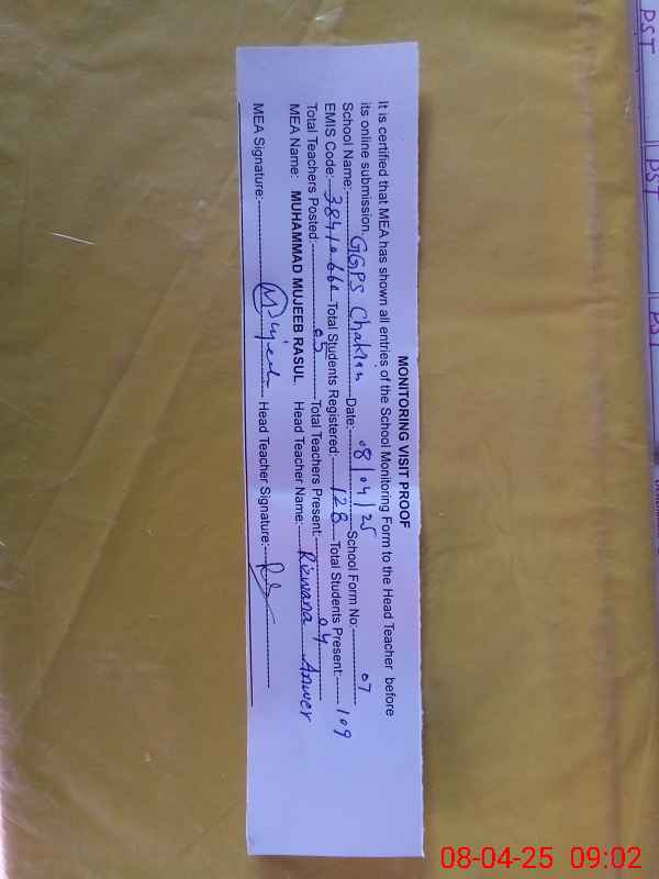 | EMIS Code: 38410660 | Name of School: GGPS CHAKIAN PHULARWAN | |||
