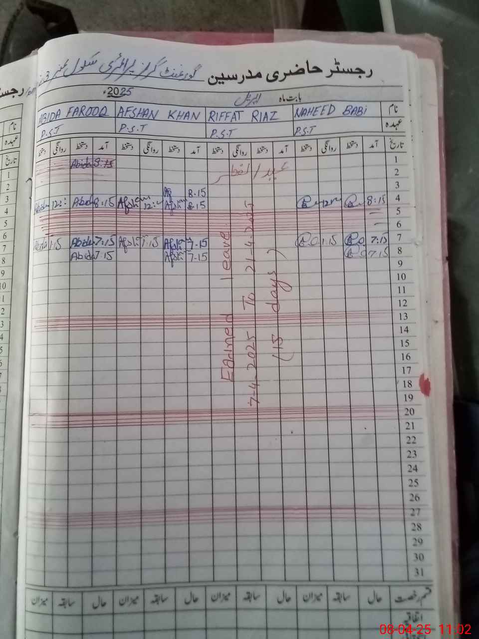| CNIC | Full Name | Designation | R/C | Absence During Last Calender Month |