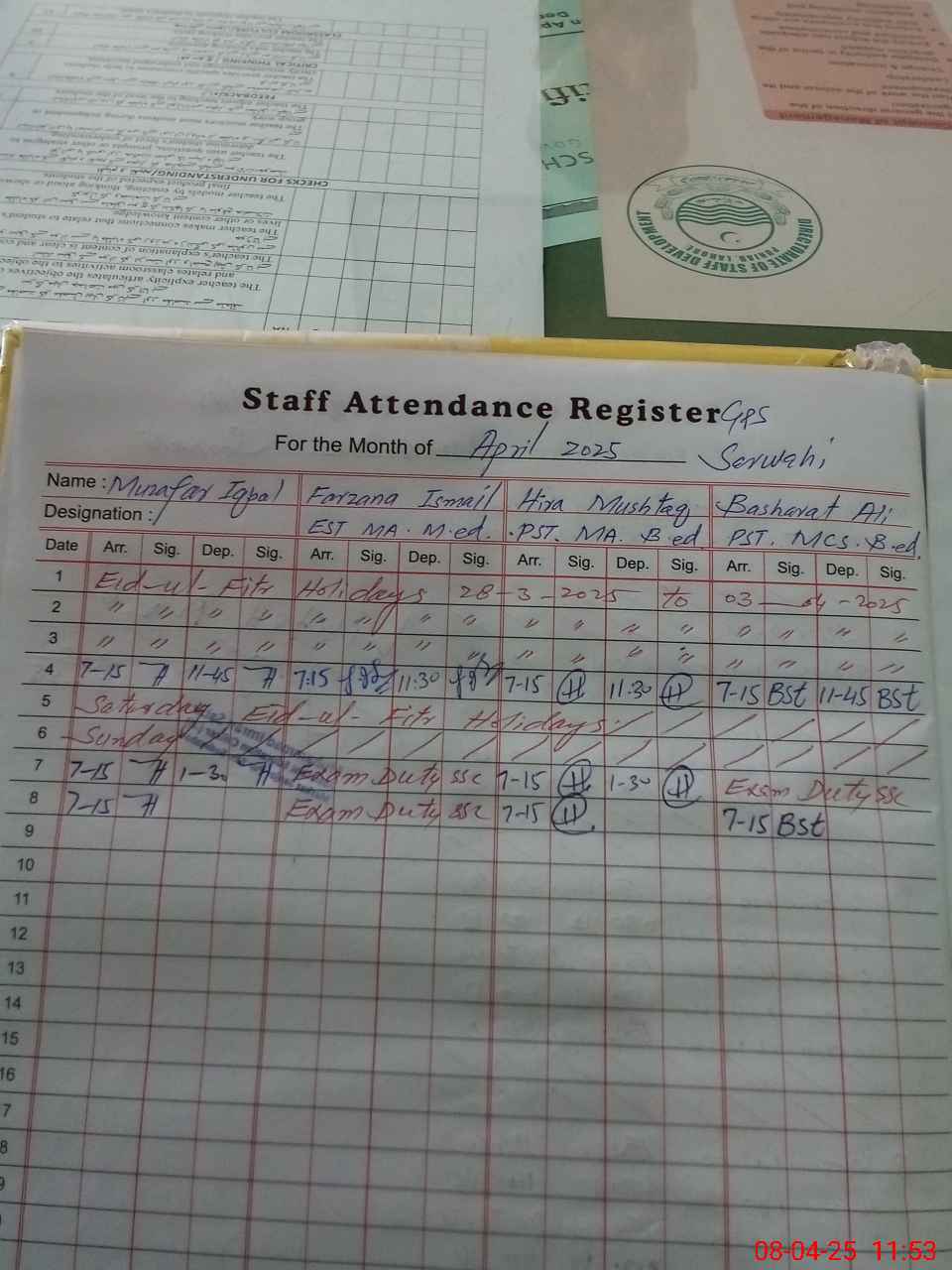 | Name: MU**** IQ**** Designation: (School Headmaster's/Headmistress's) PST/PTC/JV Phone/Cell Number: 03**** |