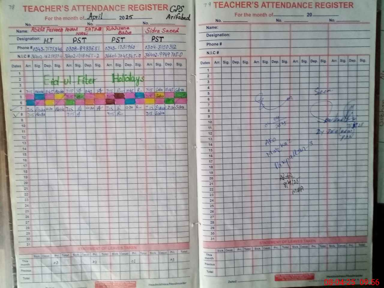 | Name: Ab**** Pa**** Designation: (School Headmaster's/Headmistress's) PST Phone/Cell Number: 03**** |