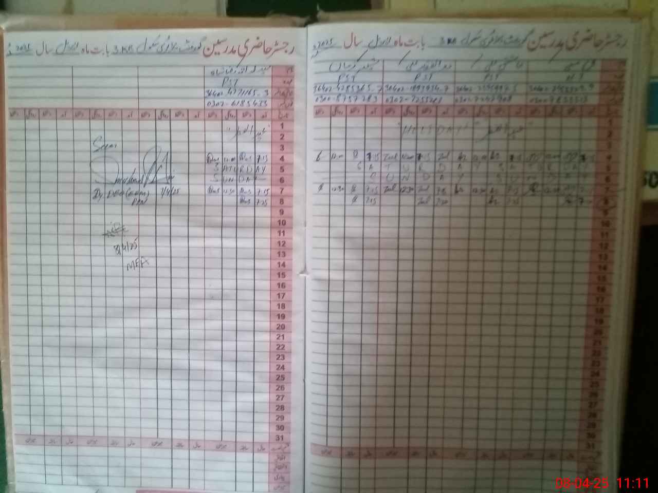 | Name: AS**** AL**** Designation: (School Headmaster's/Headmistress's) PST Phone/Cell Number: 03**** |