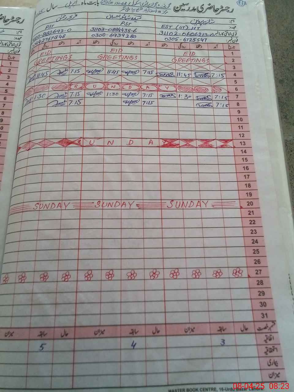 | CNIC | Full Name | Designation | R/C | Absence During Last Calender Month |