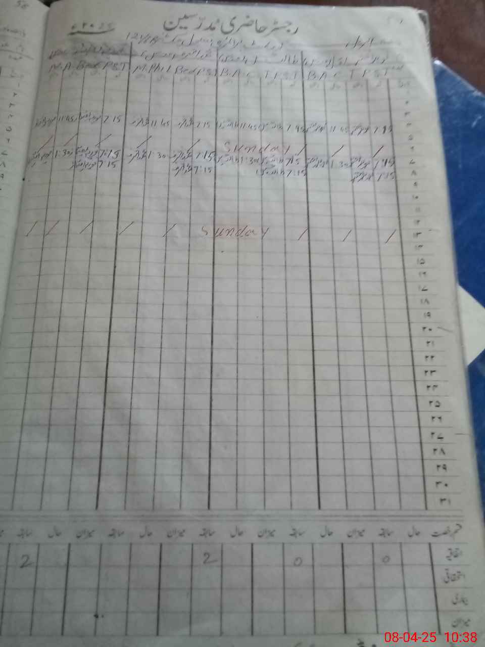| CNIC | Full Name | Designation | R/C | Absence During Last Calender Month |