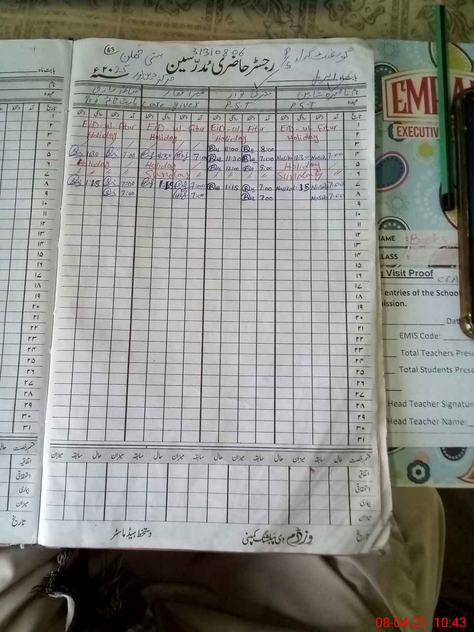 | Name: Na**** Sh**** Designation: (School Headmaster's/Headmistress's) PST Phone/Cell Number: 03**** |