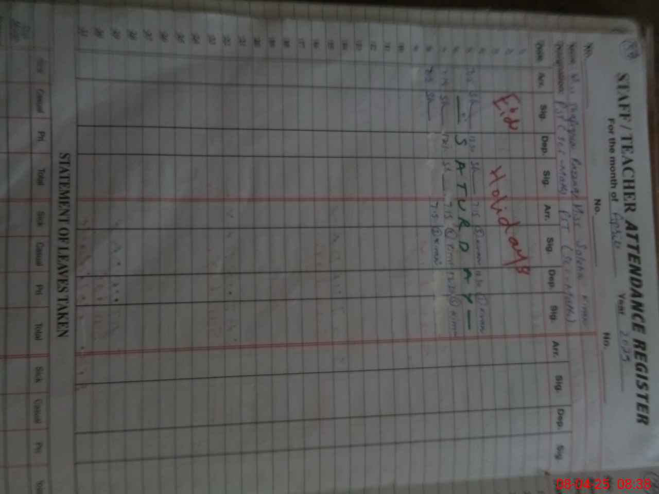 | Monitoring Date: 08-04-2025 | Start Time: 08-04-2025 08:35 AM | End Time: 08-04-2025 09:03 AM | Name of MEA: AB**** SA**** | |