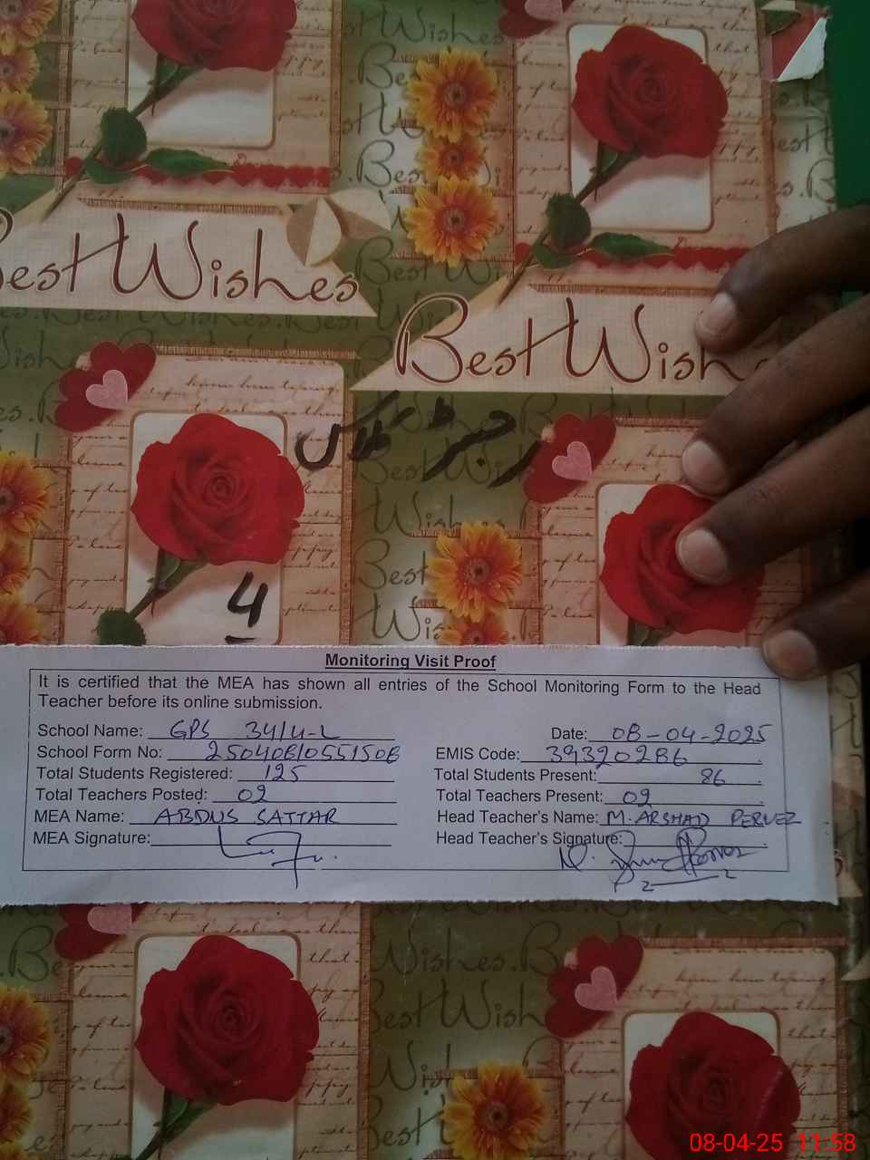 | EMIS Code: 39320286 | Name of School: GPS CHAK NO. 34/4-L | |||