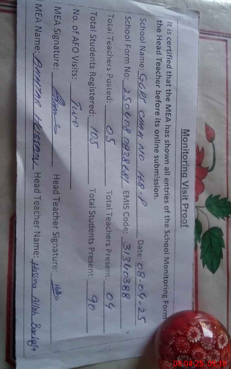 | EMIS Code: 31340388 | Name of School: GGPS CHAK 168/P | |||