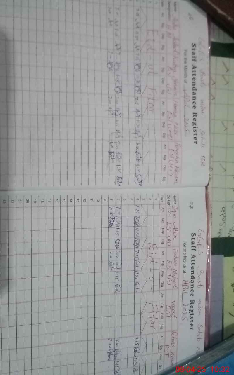 | Attendance Register | Head Teacher | MEA with School | Visit Proof |