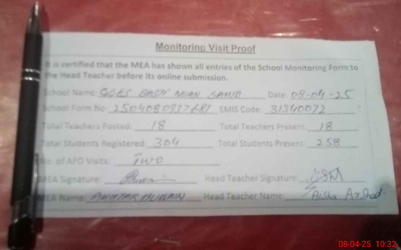 | EMIS Code: 31340072 | Name of School: GGES BASTI MIAN SAHIB | |||
