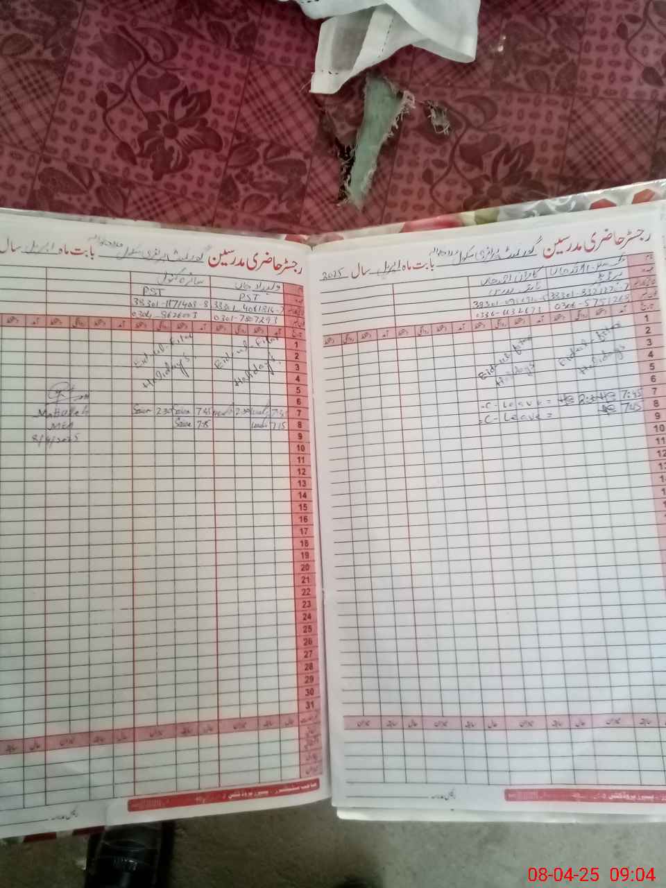 | Name: TE**** UL**** KH**** Designation: (School Headmaster's/Headmistress's) PST Phone/Cell Number: 03**** |