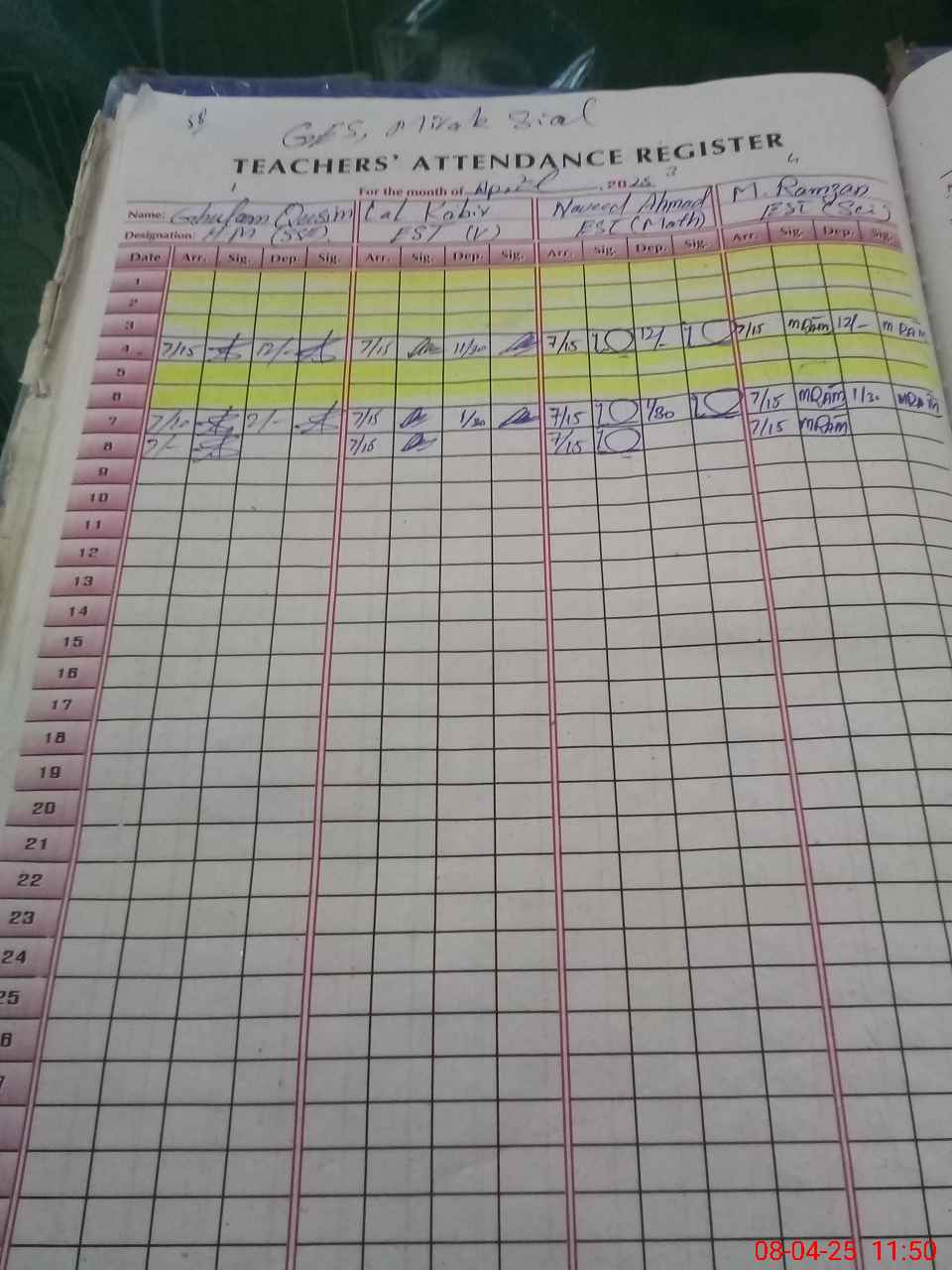 | 33**** | Wa**** UlSe**** | 3 | 1 | 0 | 0 | 0 | 0 | 0 | 0 | 0 | 0 | 0 | Exam Duty |