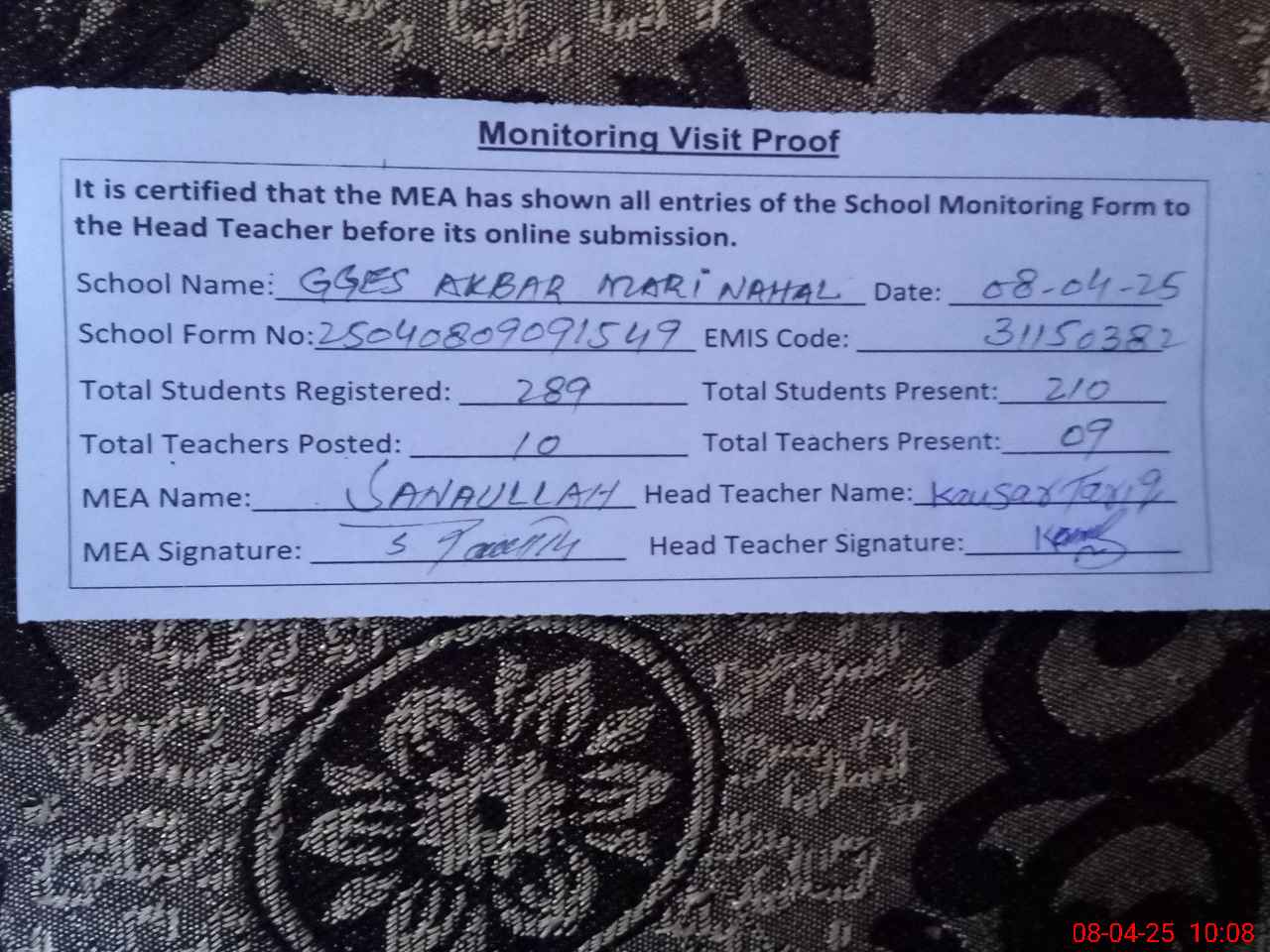 | EMIS Code: 31150382 | Name of School: GGES AKBAR MARI NEHAL | |||