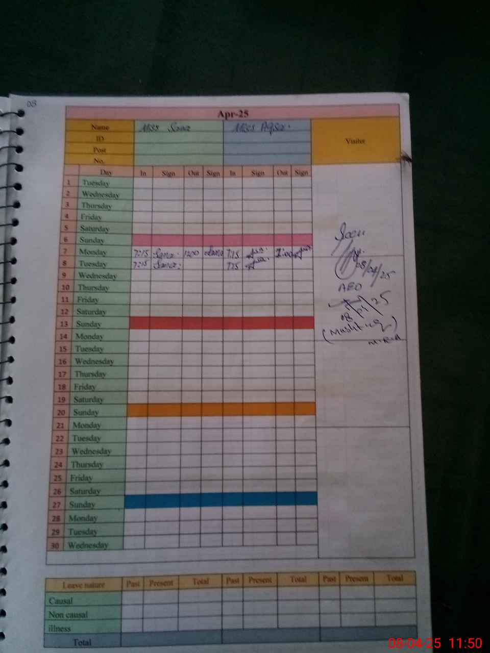 | Monitoring Date: 08-04-2025 | Start Time: 08-04-2025 11:30 AM | End Time: 08-04-2025 11:55 AM | Name of MEA: MU**** MU**** | |