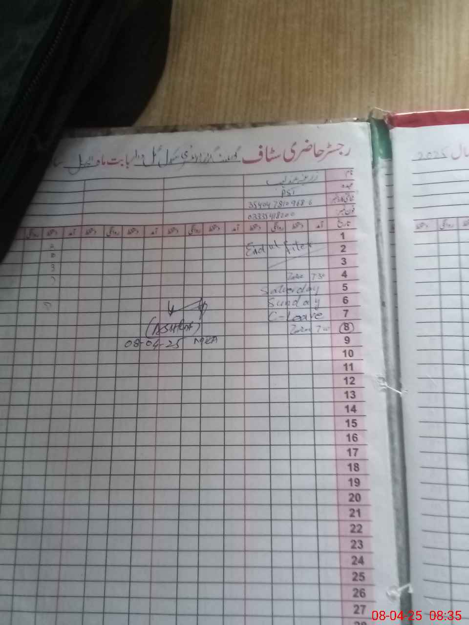 | CNIC | Full Name | Designation | R/C | Absence During Last Calender Month |