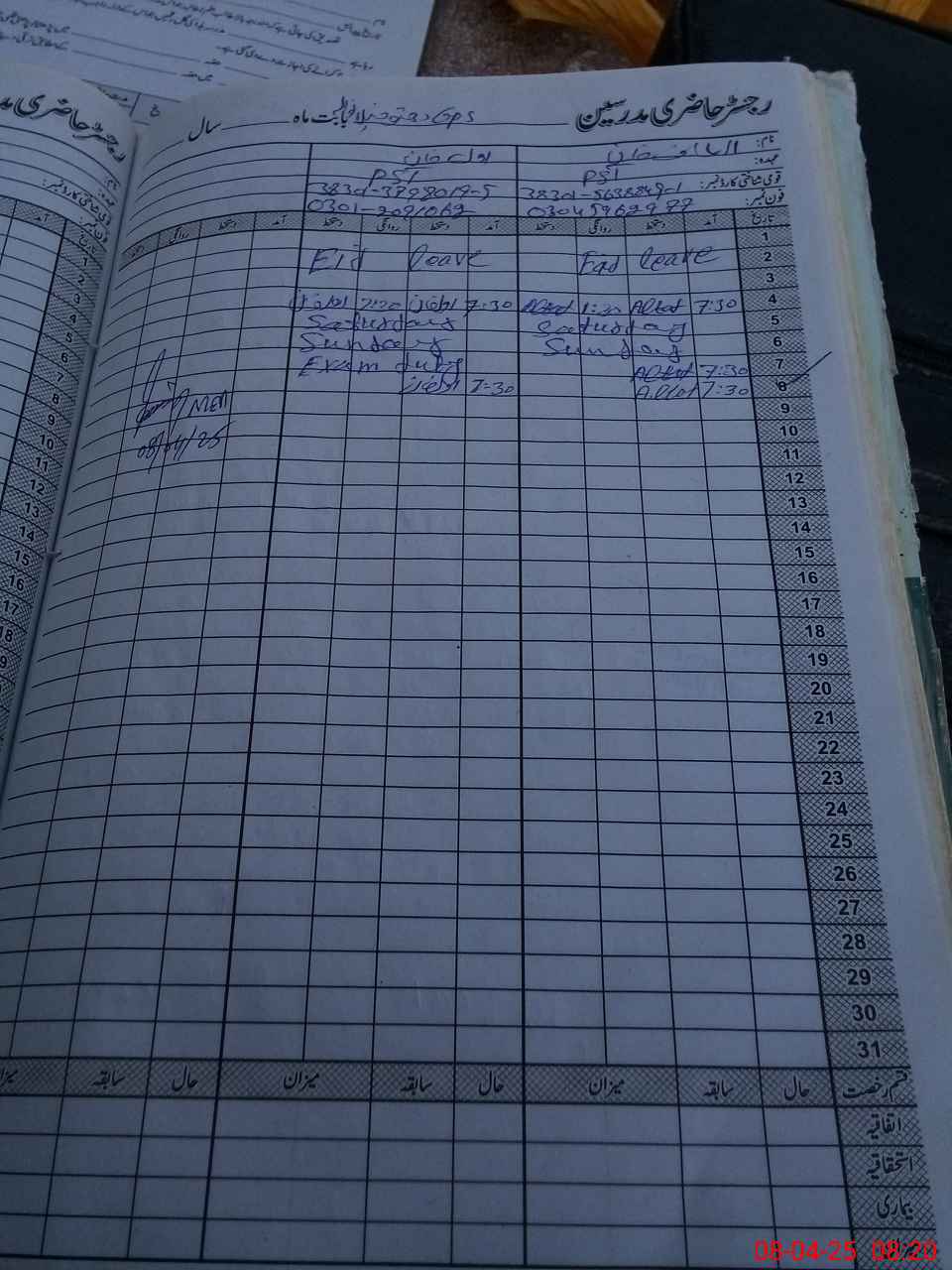 | Name: Al**** Kh**** Designation: (School Headmaster's/Headmistress's) PST Phone/Cell Number: 03**** |