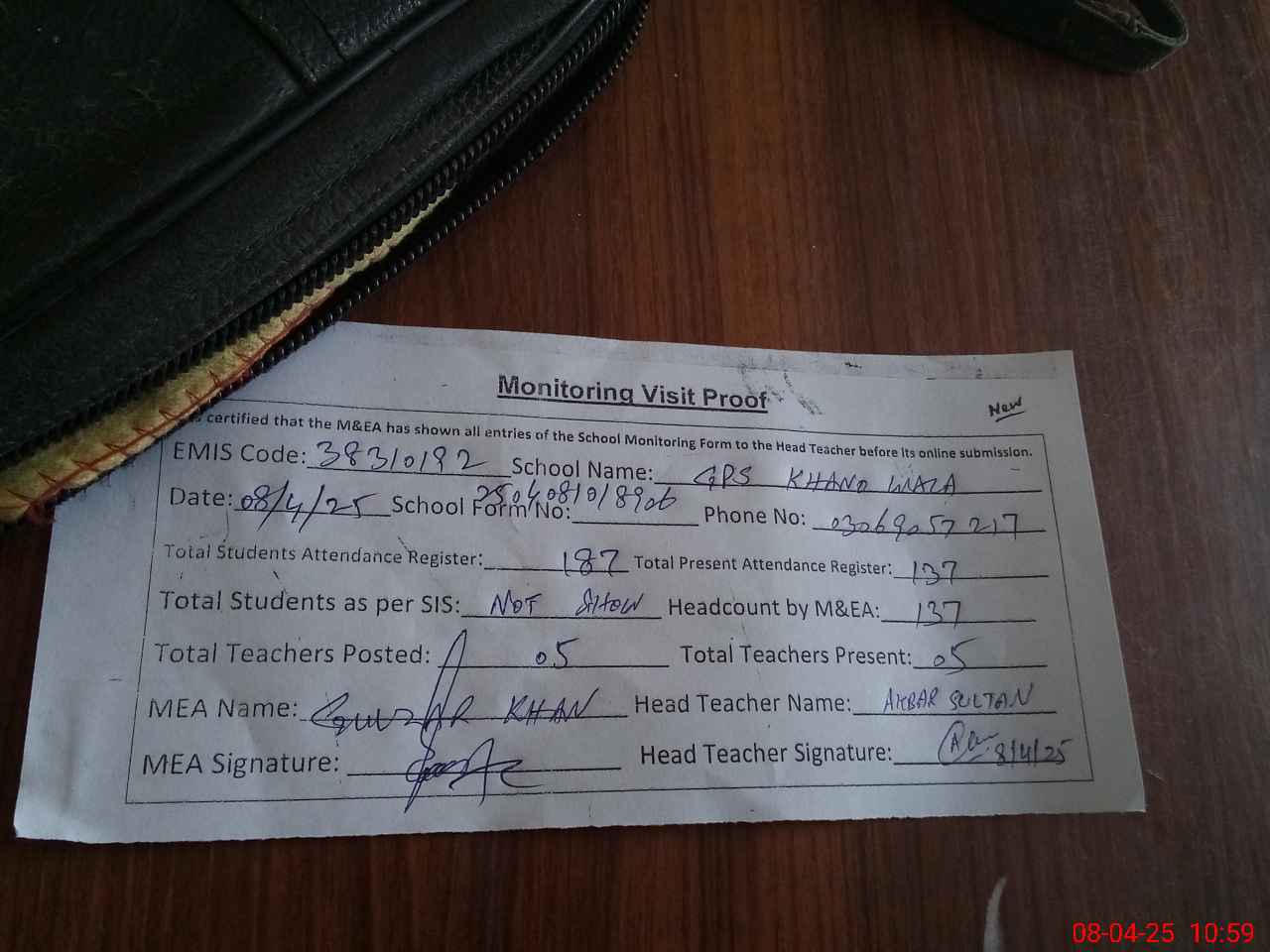 | EMIS Code: 38310192 | Name of School: GPS KHANOO WALA | |||
