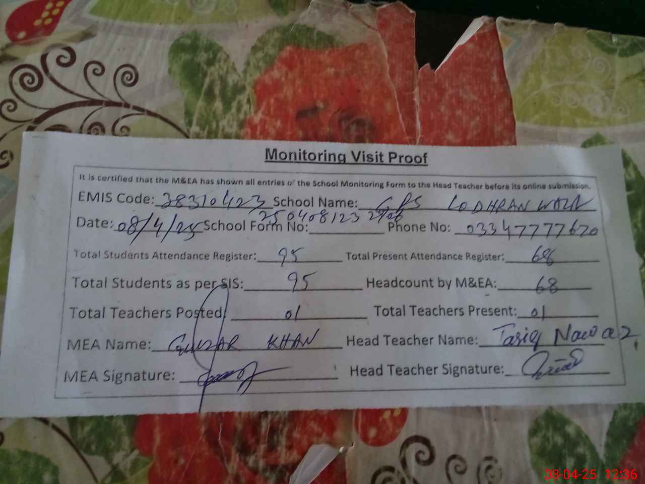 | EMIS Code: 38310423 | Name of School: GPS LODHRAN WALA | |||