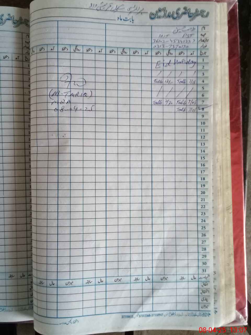 | Name: Ta**** Hu**** Designation: (School Headmaster's/Headmistress's) PST Phone/Cell Number: 03**** |