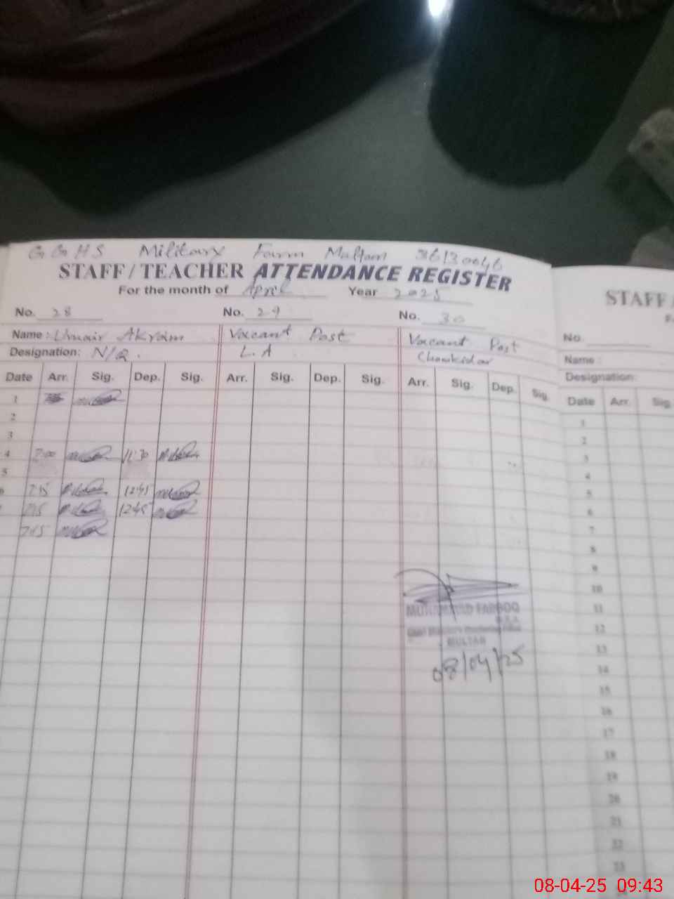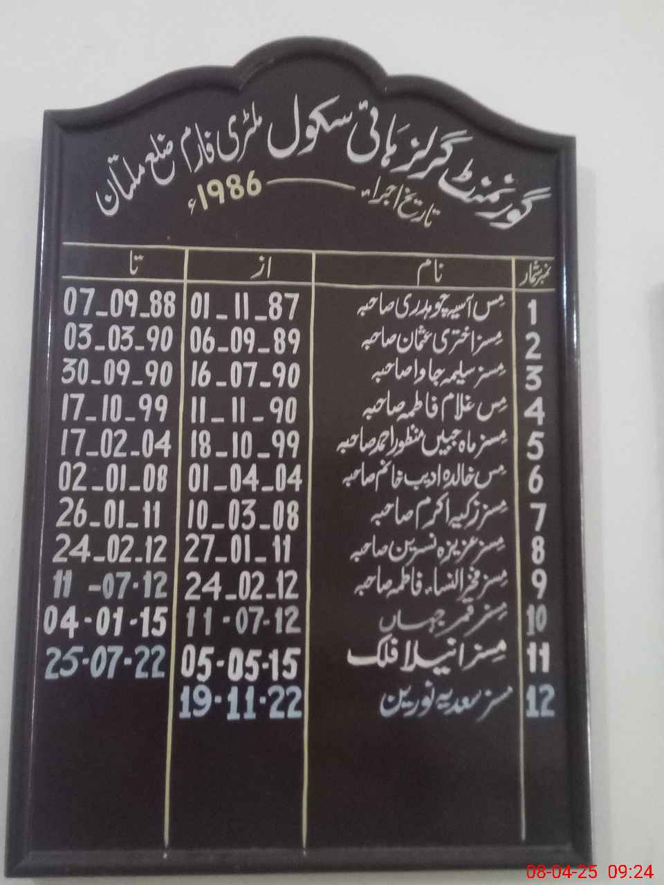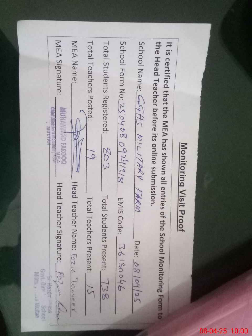 | EMIS Code: 36130046 | Name of School: GGHS MILITARY FARM MULTAN | |||