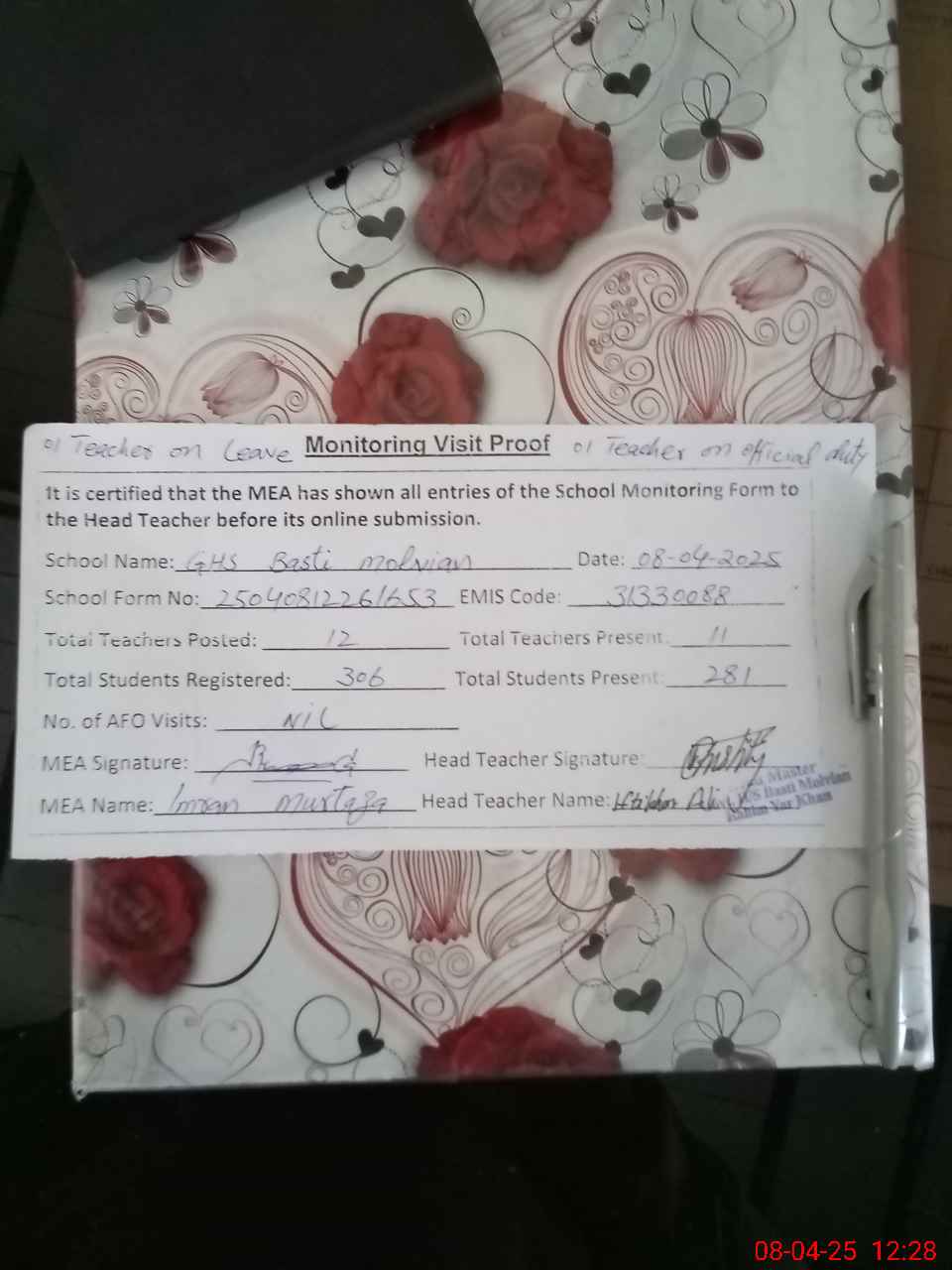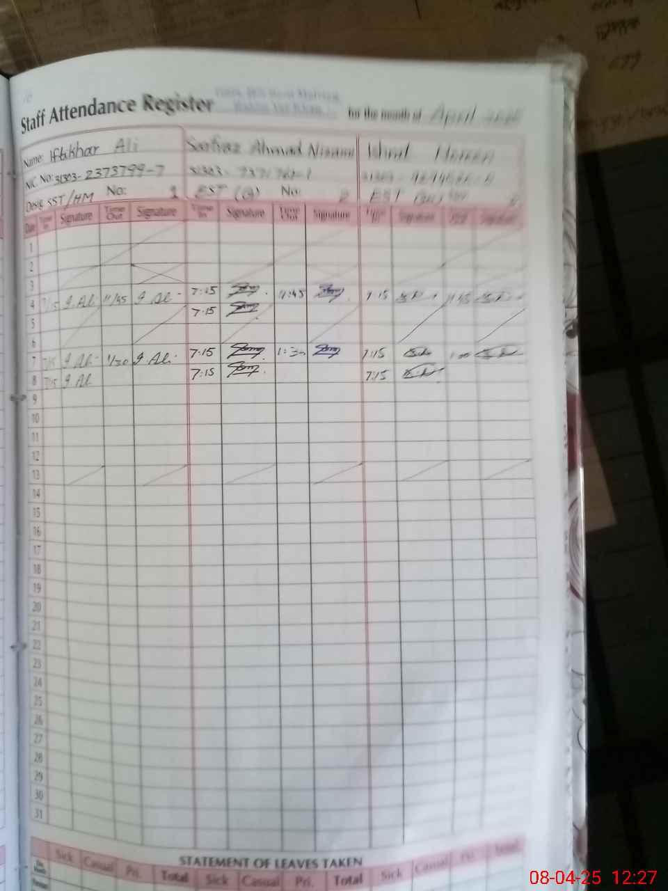 | Name: If**** Al**** Designation: (School Headmaster's/Headmistress's) S S T Phone/Cell Number: 03**** |