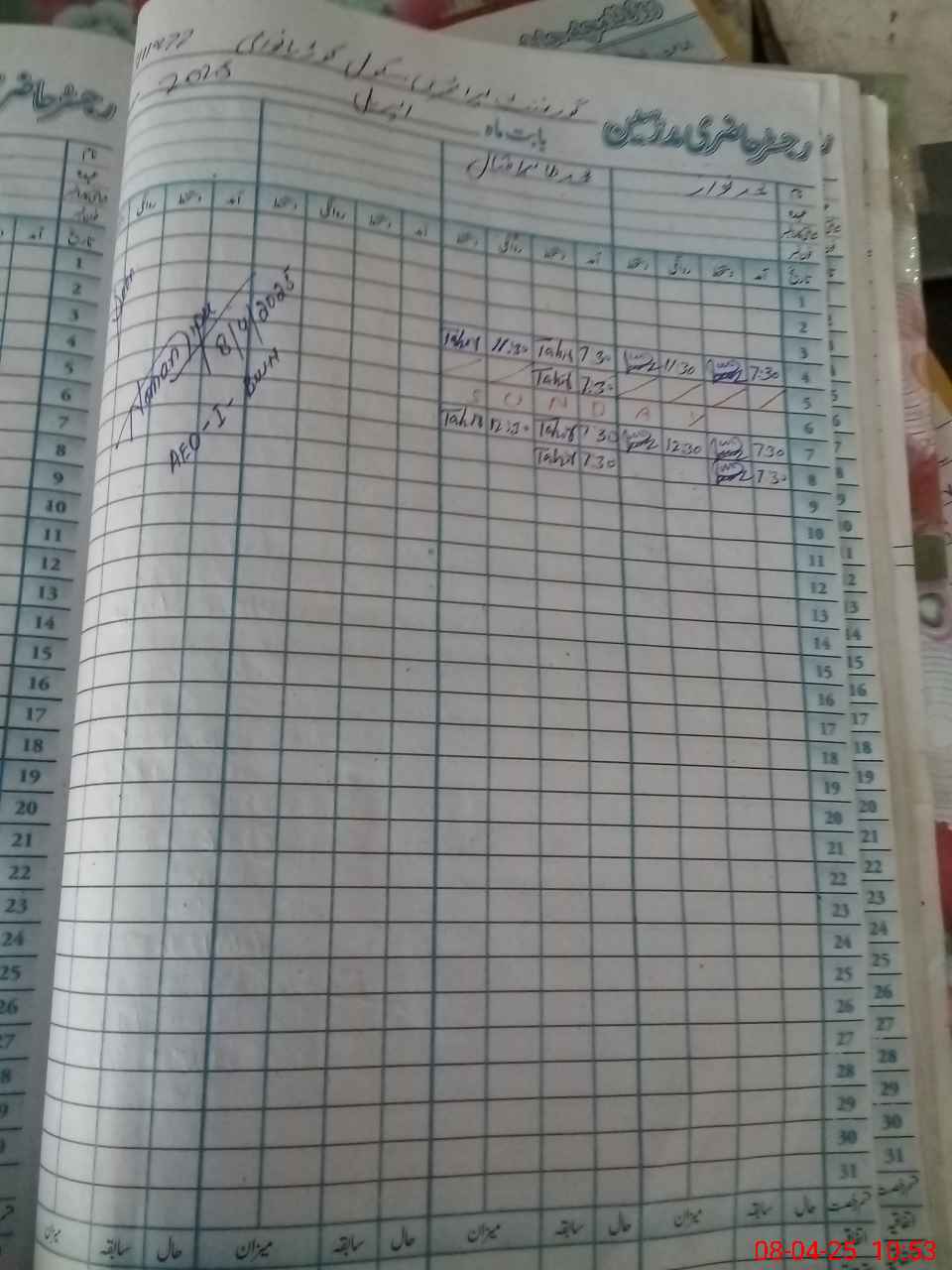 | CNIC | Full Name | Designation | R/C | Absence During Last Calender Month |