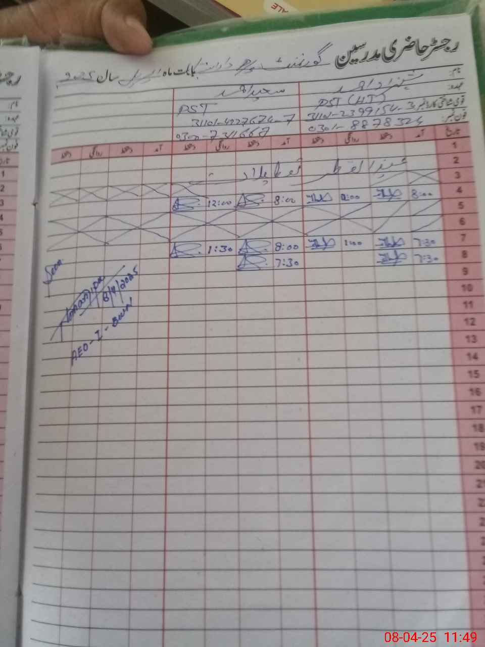 | Name: Sh**** Ah**** Designation: (School Headmaster's/Headmistress's) ESE Sci Math Phone/Cell Number: 03**** |