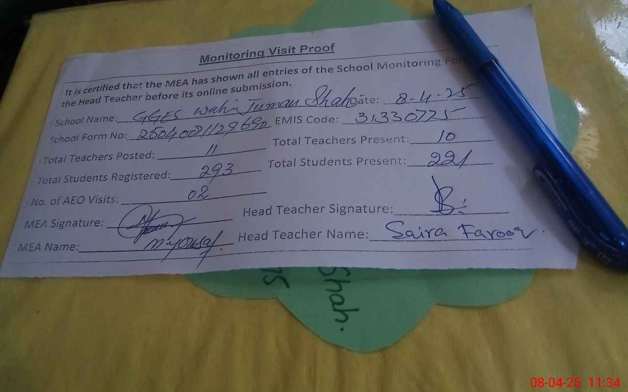 | EMIS Code: 31330775 | Name of School: GGES WAHI JUMAN SHAH | |||