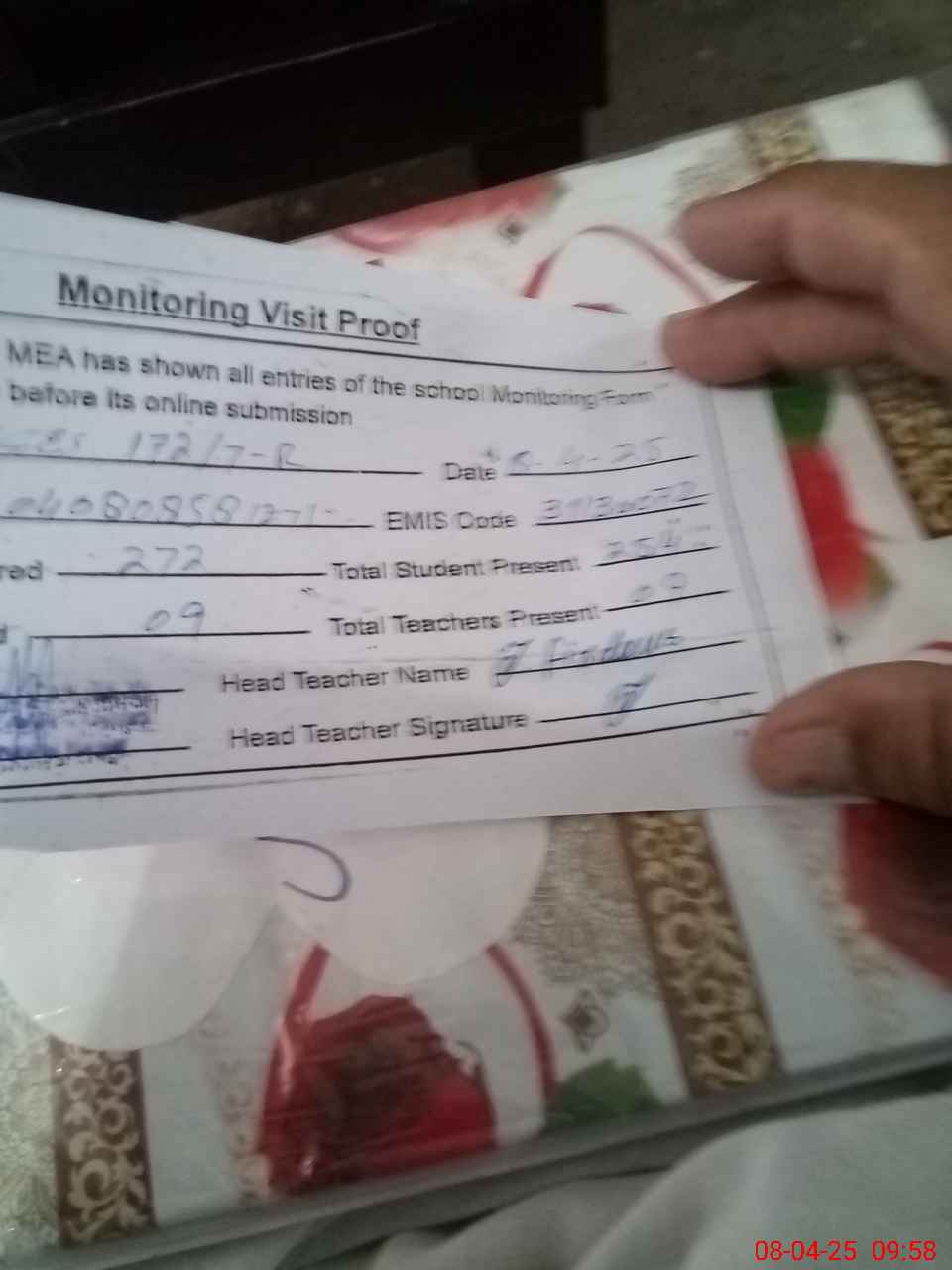 | EMIS Code: 31130072 | Name of School: GGES CHAK NO. 172/7-R | |||