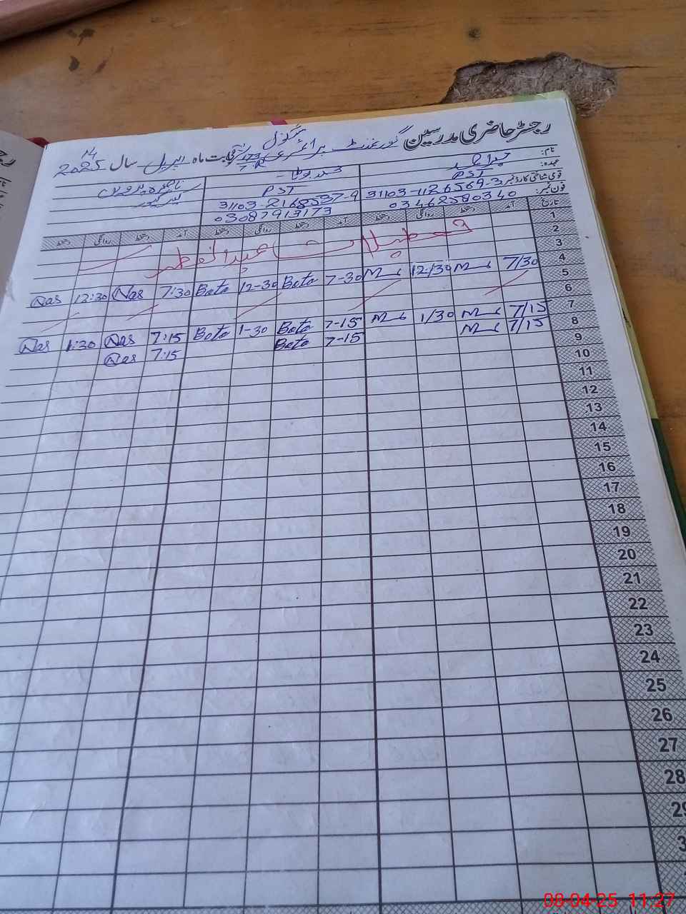 | CNIC | Full Name | Designation | R/C | Absence During Last Calender Month |