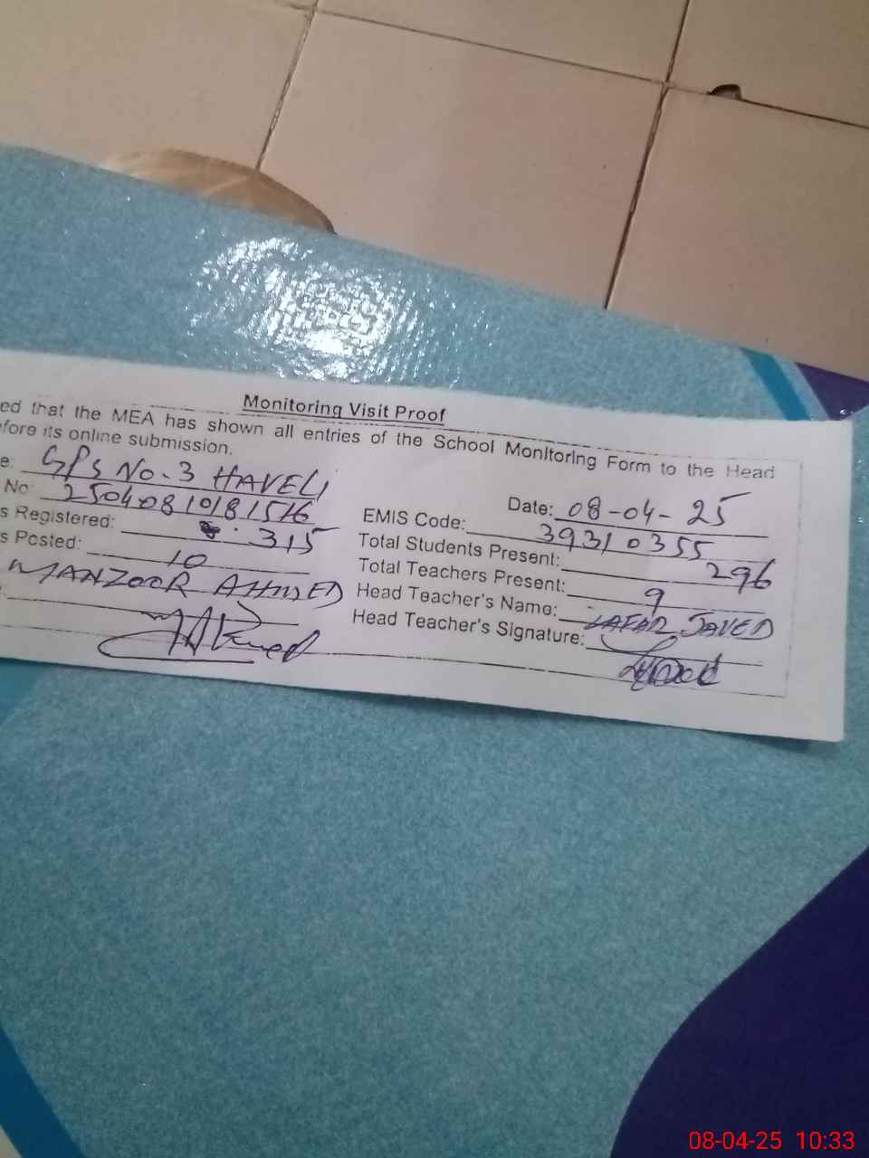 | EMIS Code: 39310355 | Name of School: GPS NO 3 HAVELI | |||