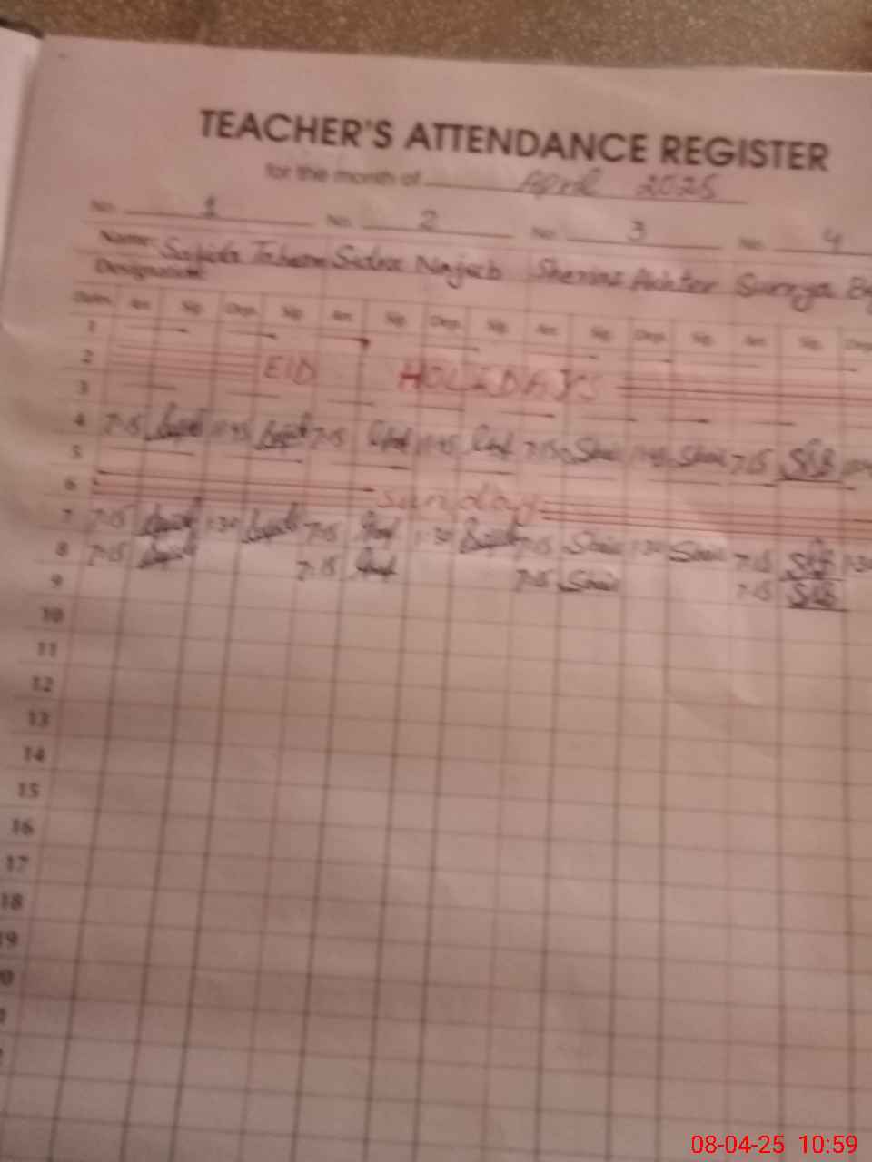| Monitoring Date: 08-04-2025 | Start Time: 08-04-2025 10:59 AM | End Time: 08-04-2025 11:26 AM | Name of MEA: MA**** AH**** | |