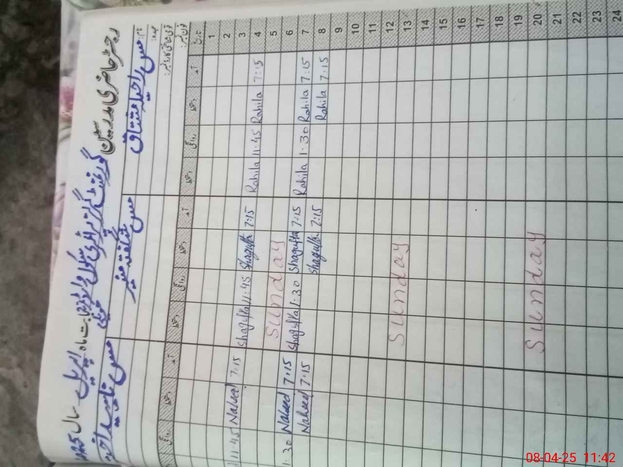 | CNIC | Full Name | Designation | R/C | Absence During Last Calender Month |