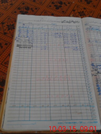 | CNIC | Full Name | Designation | R/C | Absence During Last Calender Month |