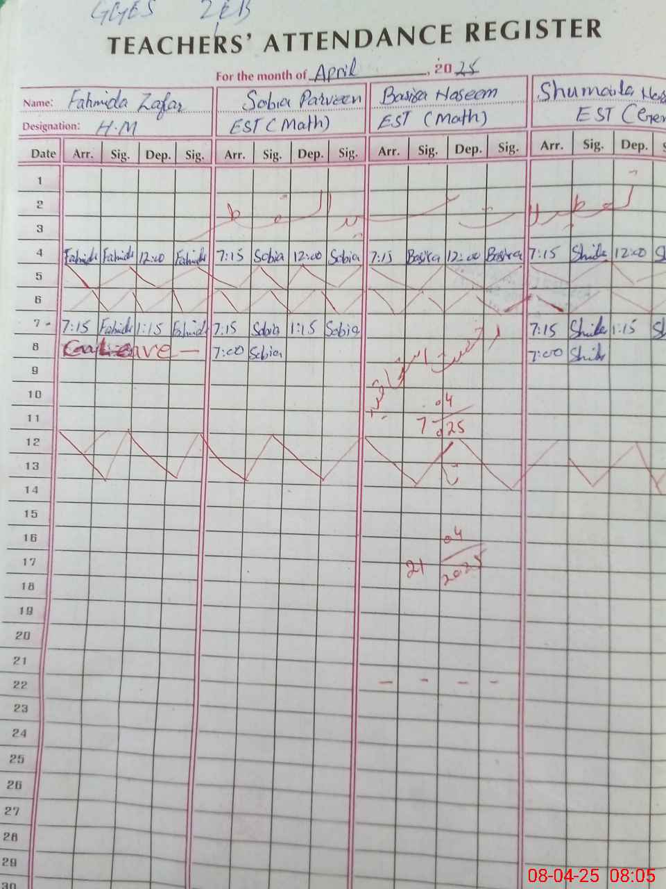 | Name: FE**** ZA**** Designation: (School Headmaster's/Headmistress's) SST(BIO) Phone/Cell Number: 03**** |