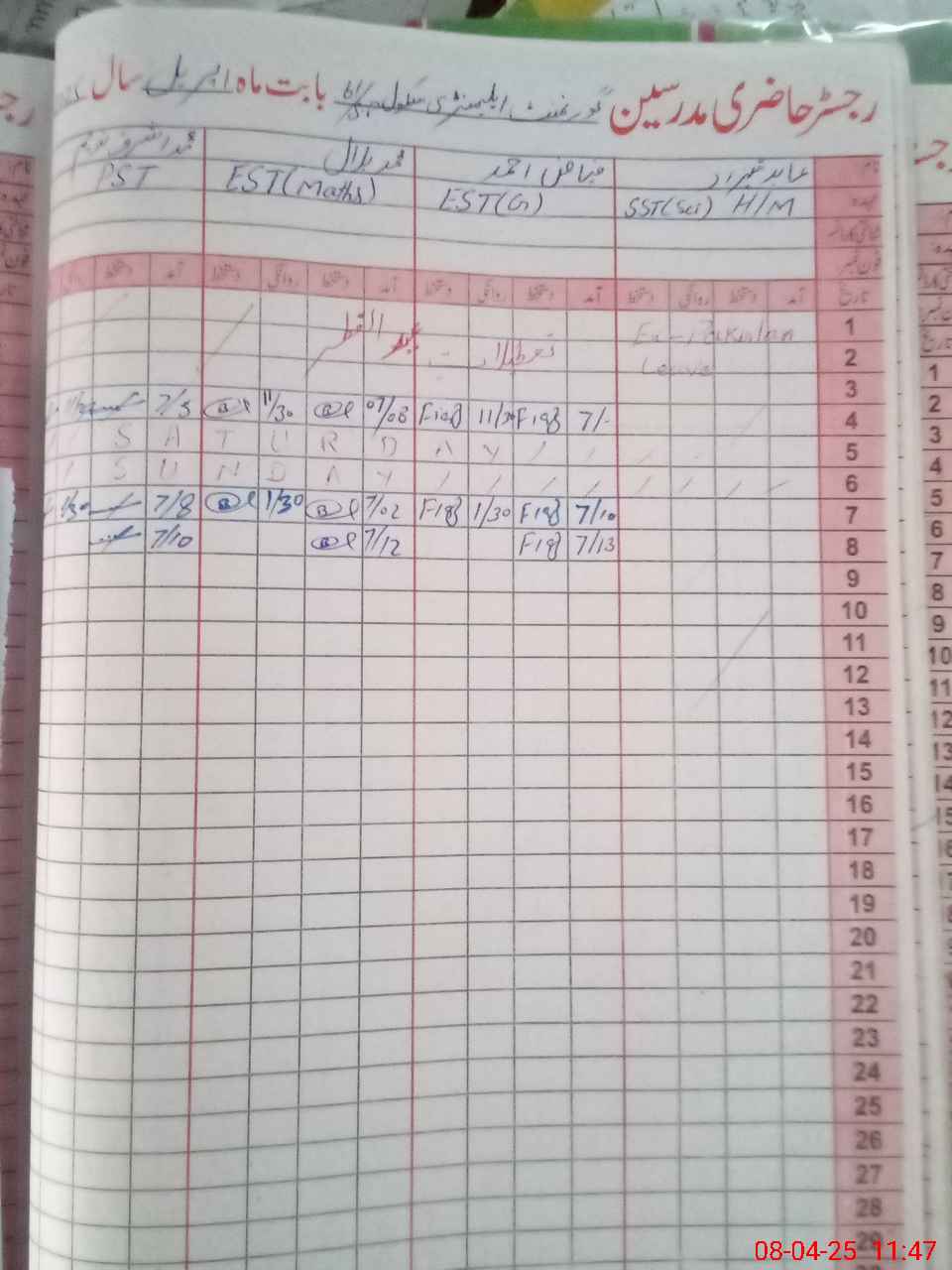 | Leave | Duty | Absent | Maternity | Medical | Ex- Pak |
