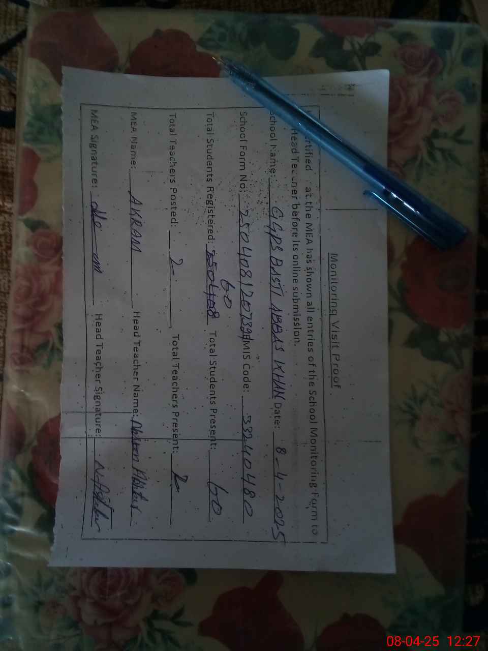 | EMIS Code: 33240480 | Name of School: GGPS BASTI ABBAS KHAN | |||