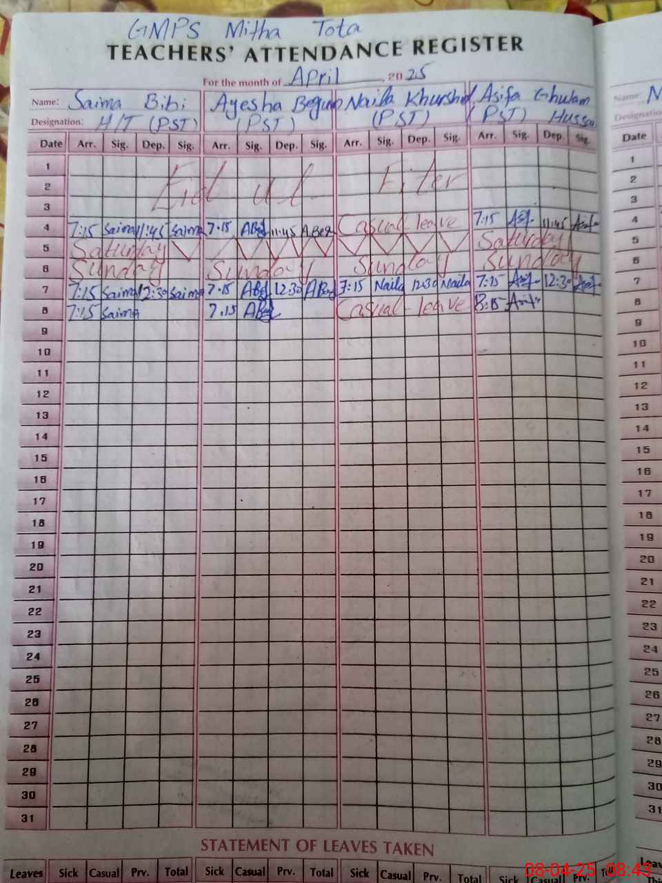 | 36**** | Na**** Kh**** | PST | Regular | 0 | 0 | 0 | 0 | 0 | 0 | 0 | 0 | 0 | Casual |