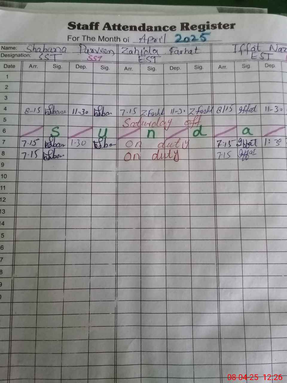 | 36**** | Za**** Fa**** | 3 | 1 | 0 | 0 | 0 | 0 | 0 | 0 | 0 | 0 | 0 | Exam Duty |