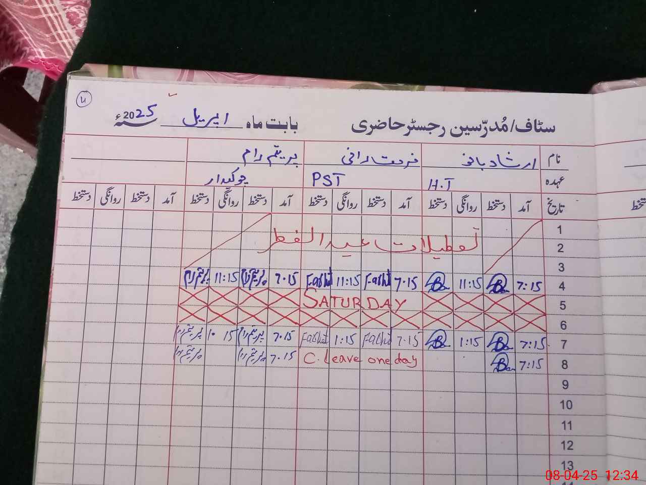 | Name: IR**** BA**** Designation: (School Headmaster's/Headmistress's) PST Phone/Cell Number: 03**** |