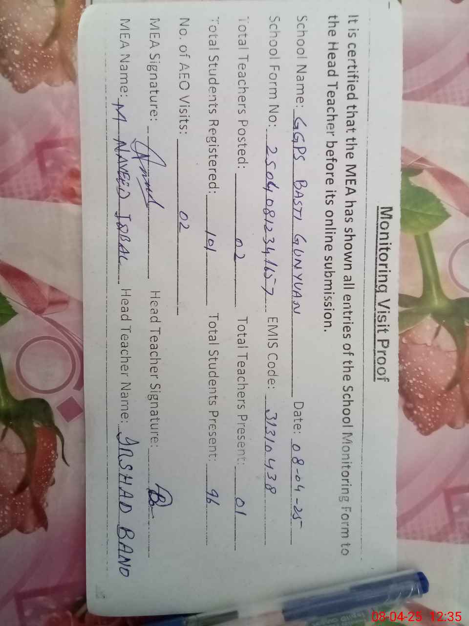 | EMIS Code: 31310438 | Name of School: GGPS BASTI GUNYUAN | |||