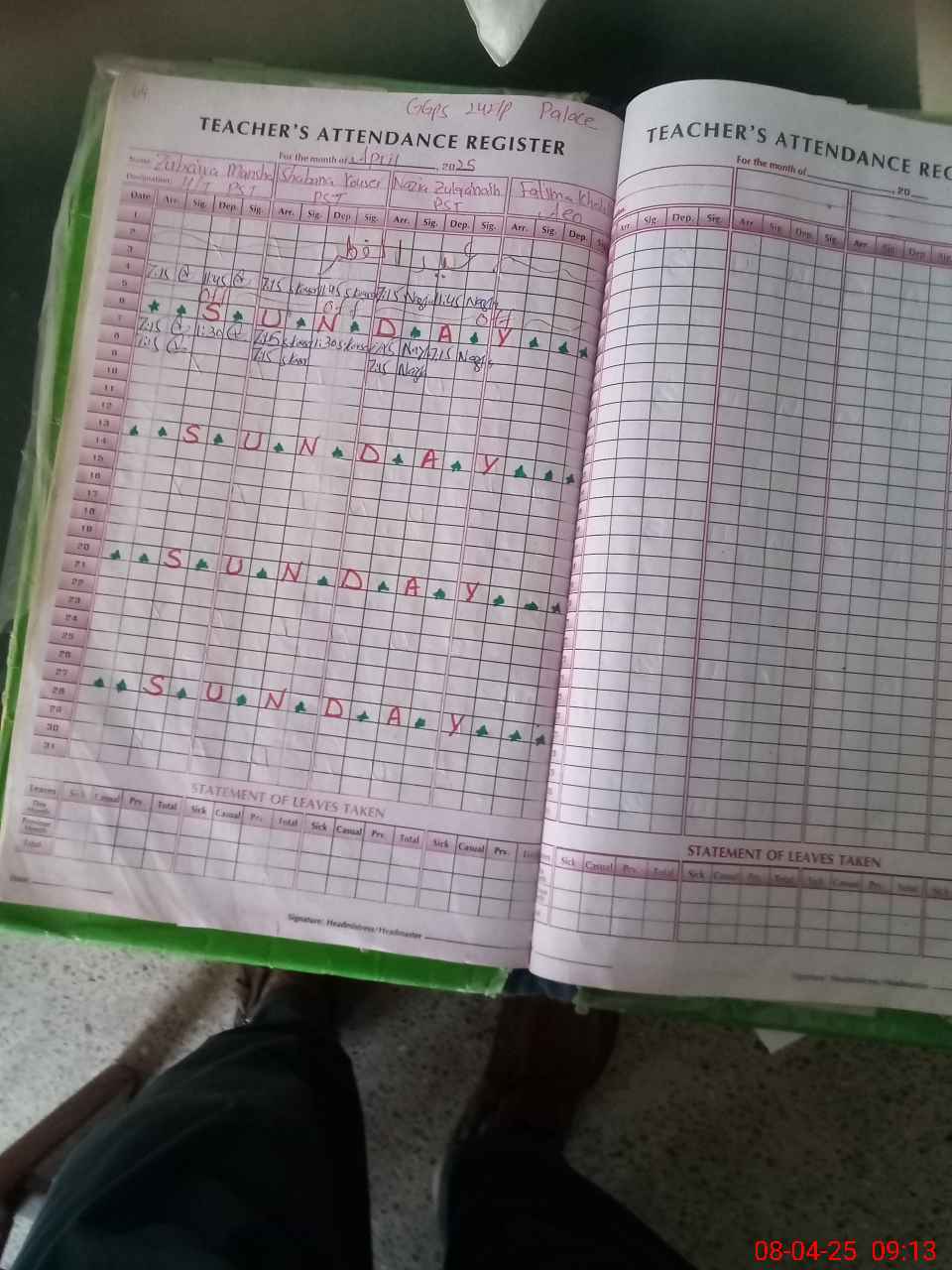 | Leave | Duty | Absent | Maternity | Medical | Ex- Pak |
