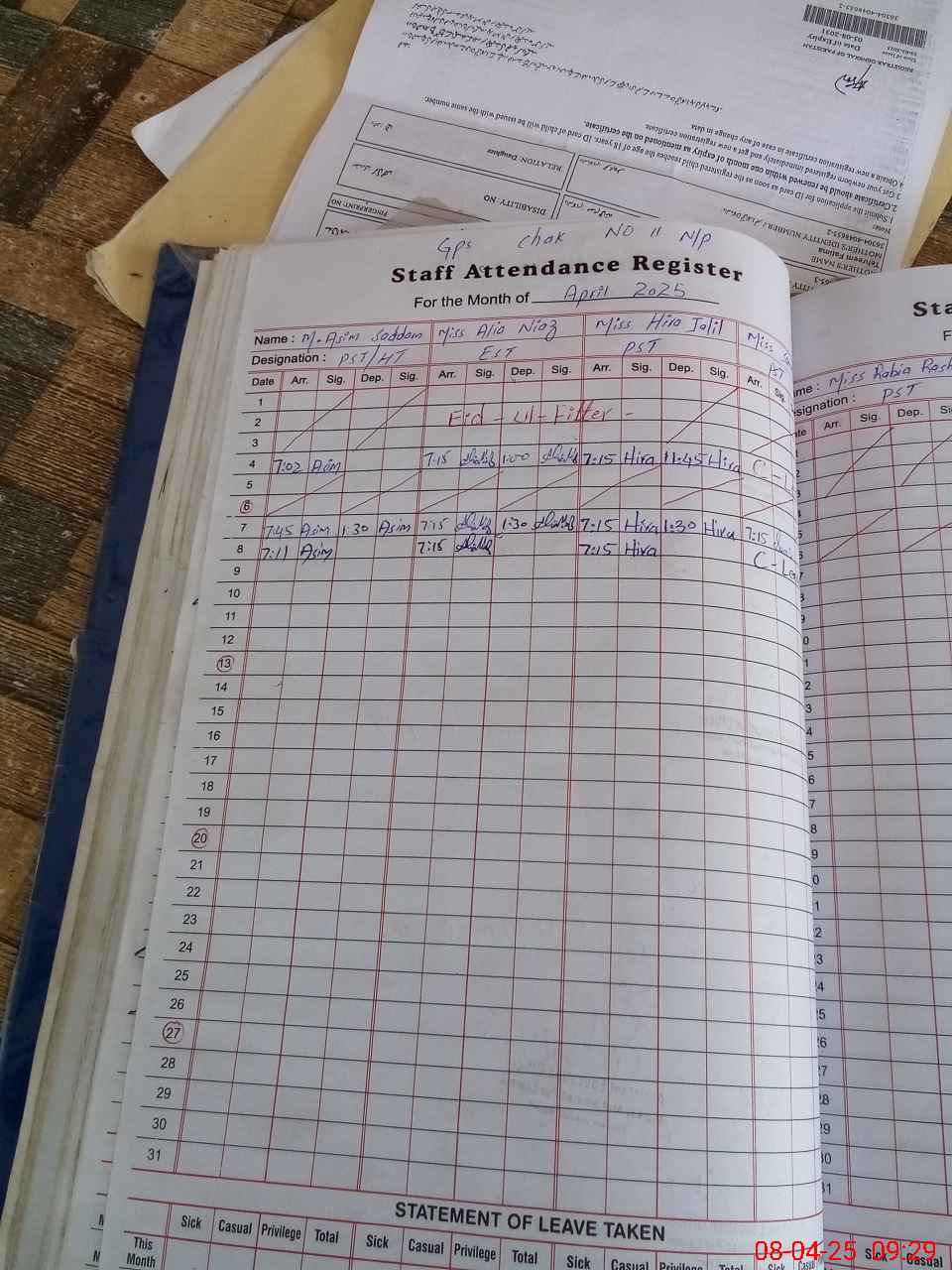 | Name: M.**** Sa**** Designation: (School Headmaster's/Headmistress's) PST Phone/Cell Number: 03**** |