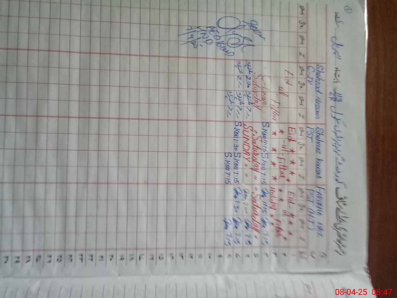 | CNIC | Full Name | Designation | R/C | Absence During Last Calender Month |