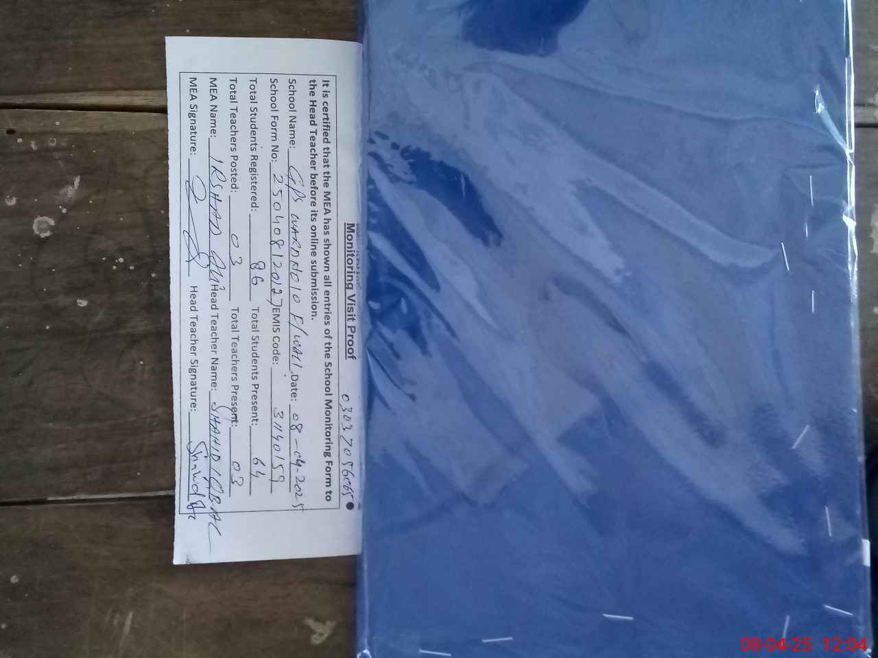 | Attendance Register | Head Teacher | MEA with School | Visit Proof |