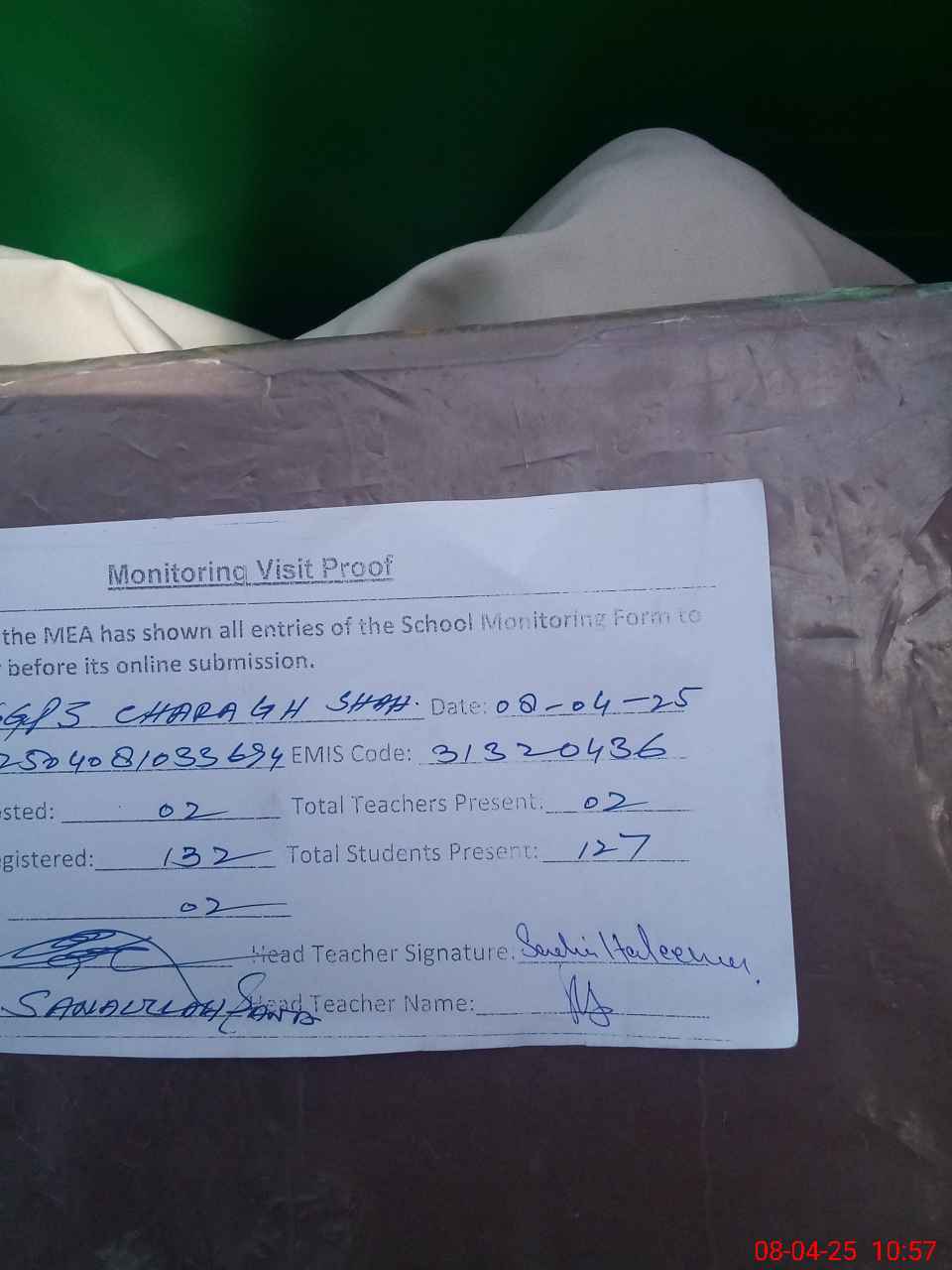 | EMIS Code: 31320436 | Name of School: GGPS CHARAGH HUSSAIN SHAH | |||